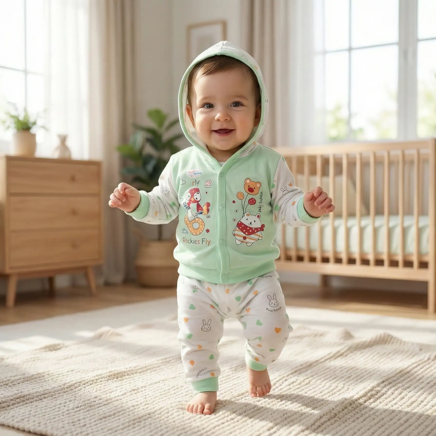 👶 Product Type: 3 পিস শিশুদের হুডি সেট (হুডি জামা + প্যান্ট + ক্যাপ)
