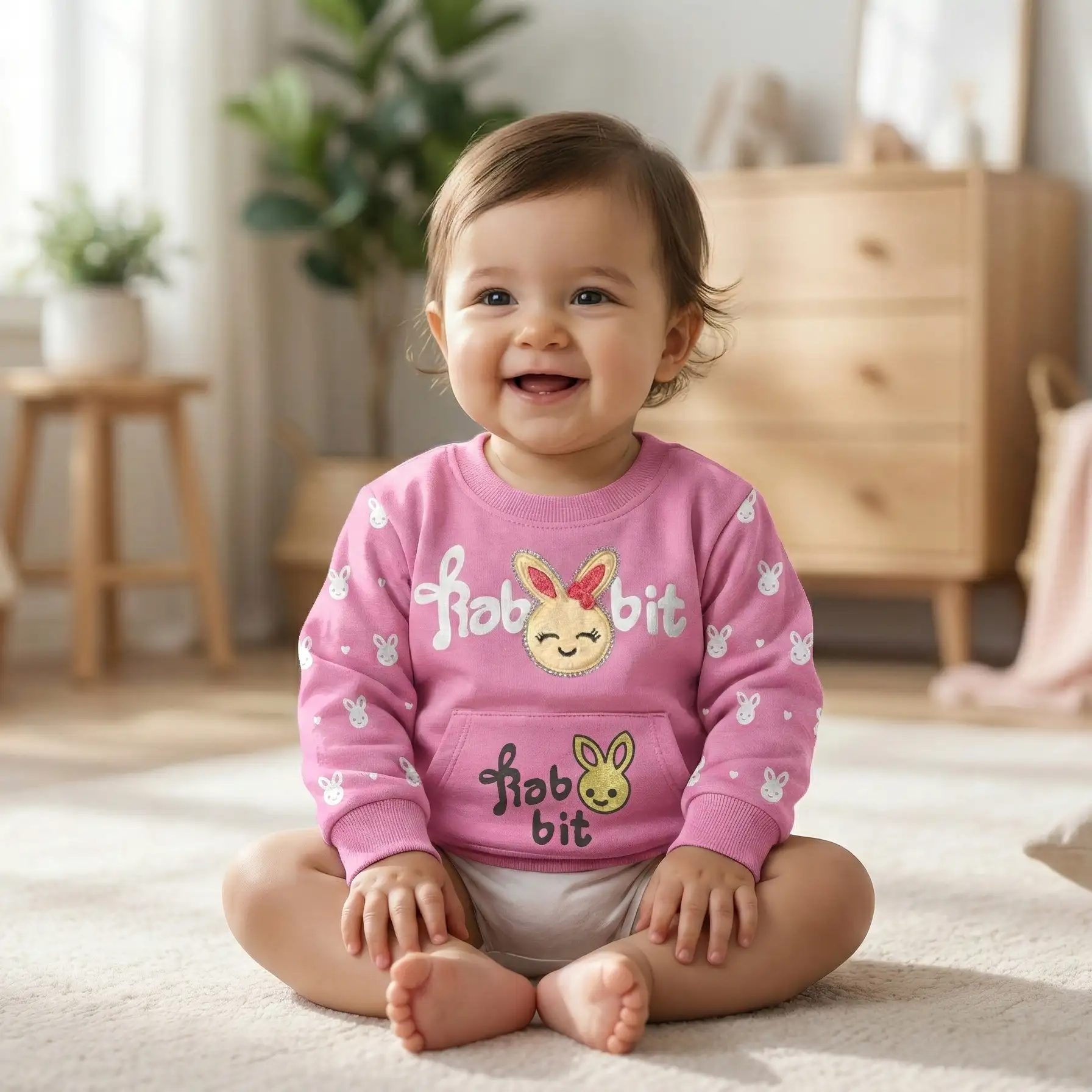 Adorable and warm baby sweatshirt with cute bunny embroidery and pocket design. Made from soft, skin-friendly fabric to keep your little one cozy and stylish during cooler days.
