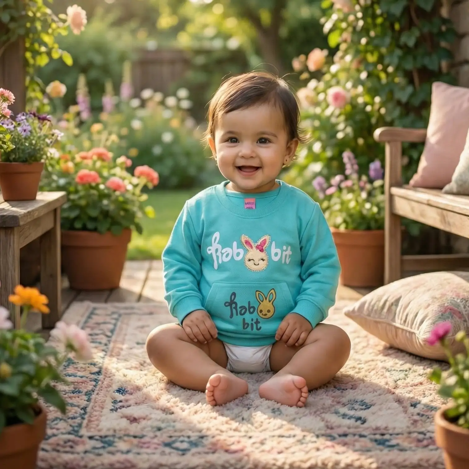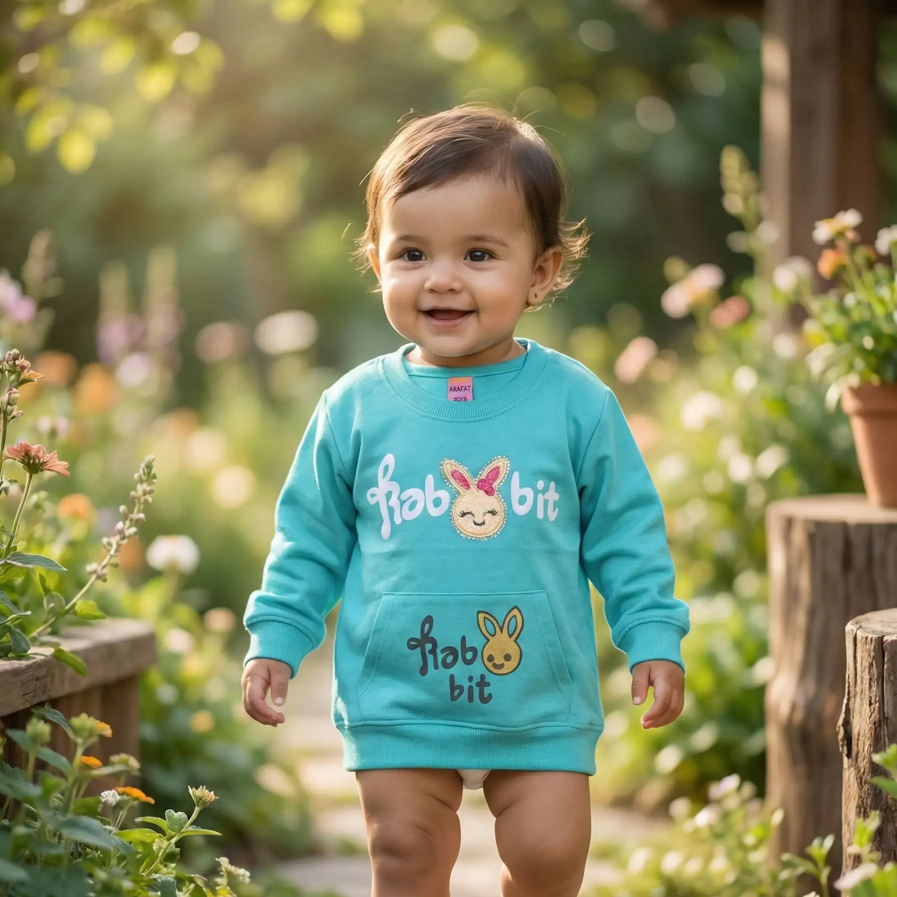 Soft, cozy, and adorable baby sweatshirt featuring a cute bunny design. Made from warm, baby-friendly fabric to keep your little one comfy and stylish during cooler weather.